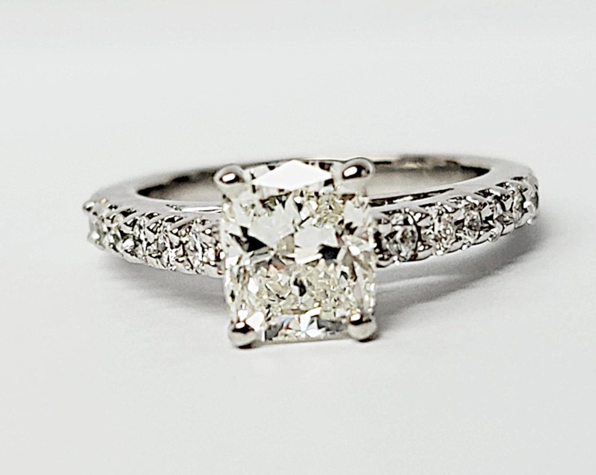 Beautiful Cushion Cut Diamond Engagement Ring set in a 14k white gold single row diamond setting. Great for Engagement Ring or an Upgrade diamond ring.