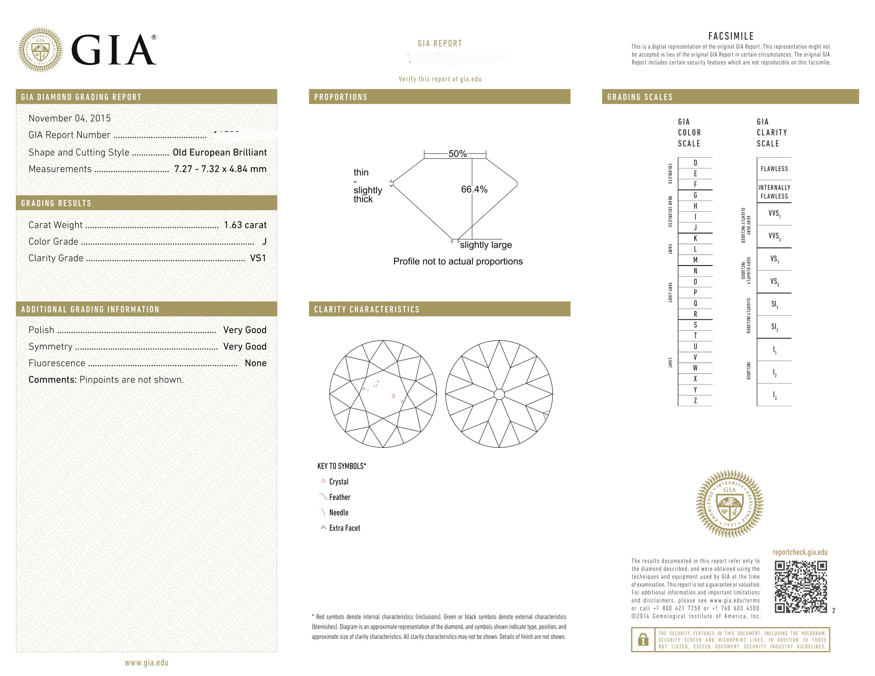 Diamond Grade: Color: J, Clarity: VS-1 (GIA)
