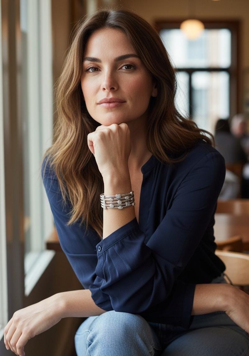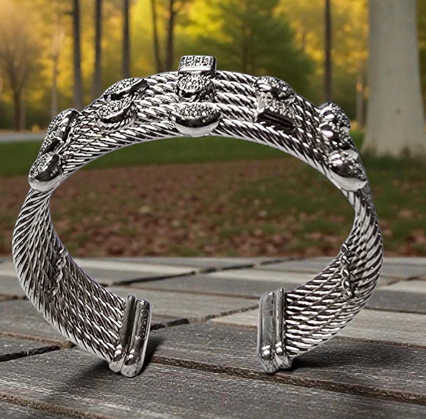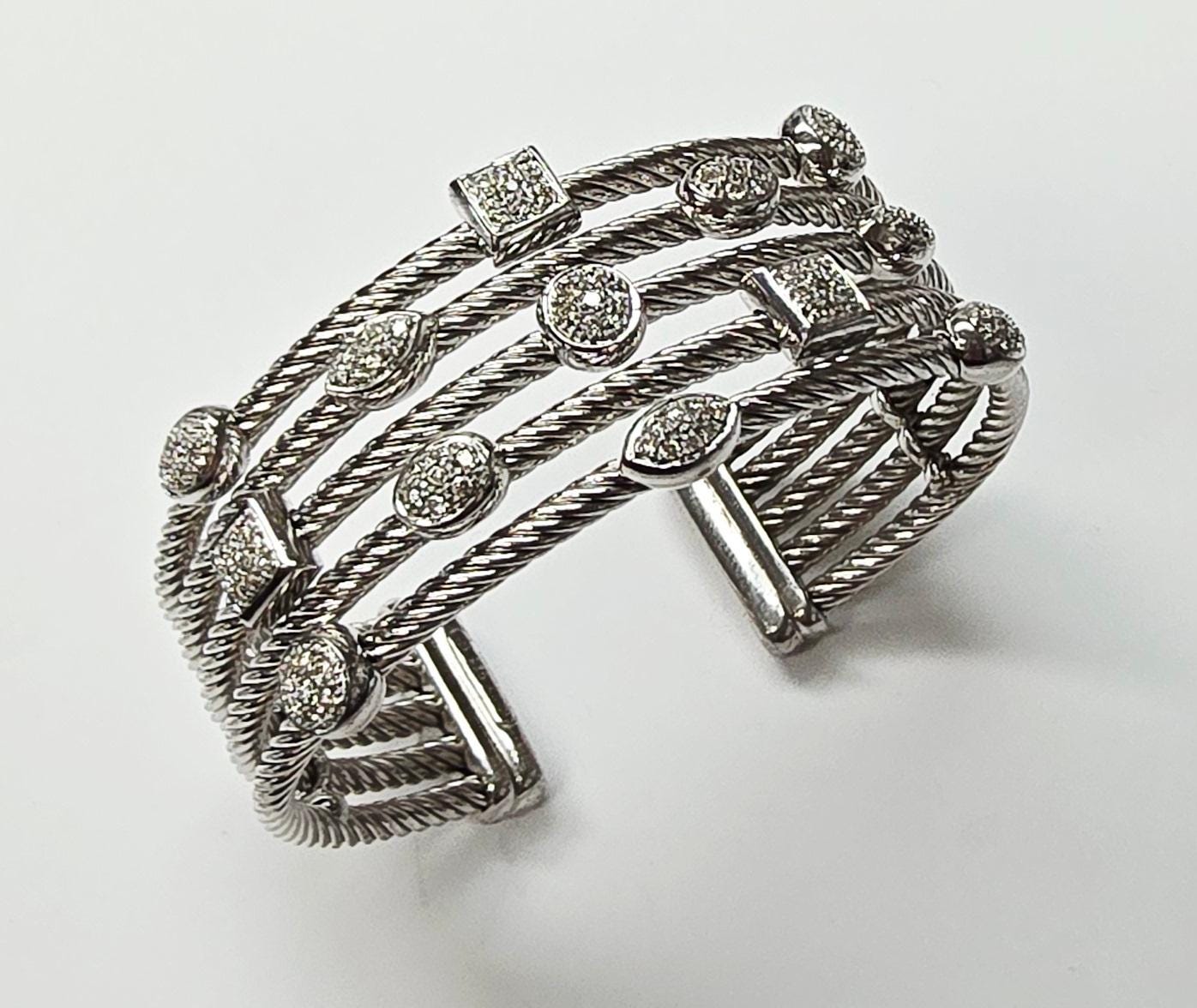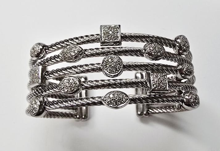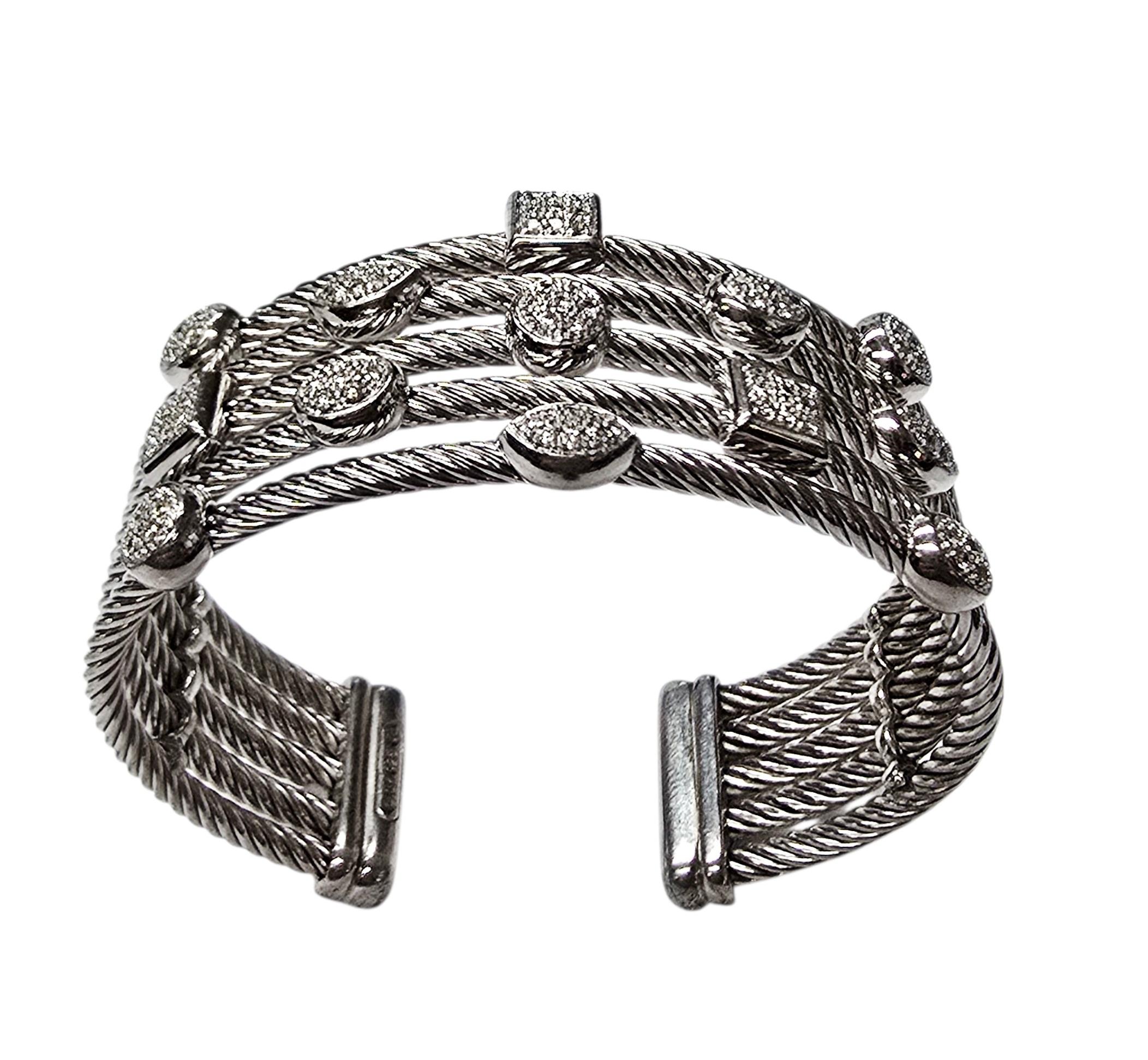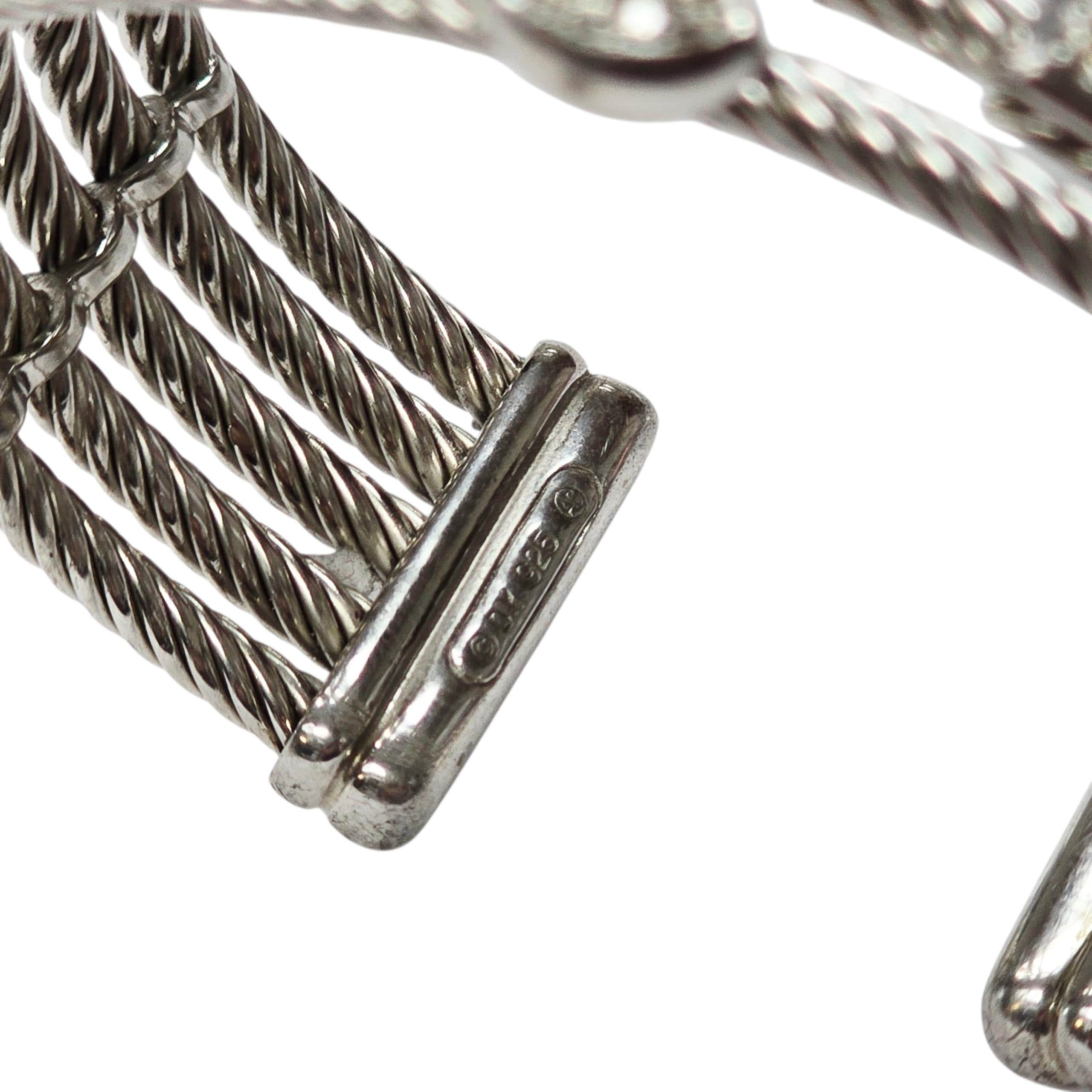 Authentic Sterling Silver David Yurman "Confetti" 5-Row Cable Bracelet Metal: Sterling Silver Weight: 55.6 grams Diamonds: Approximately 0.80-1.00 carats (total weight)