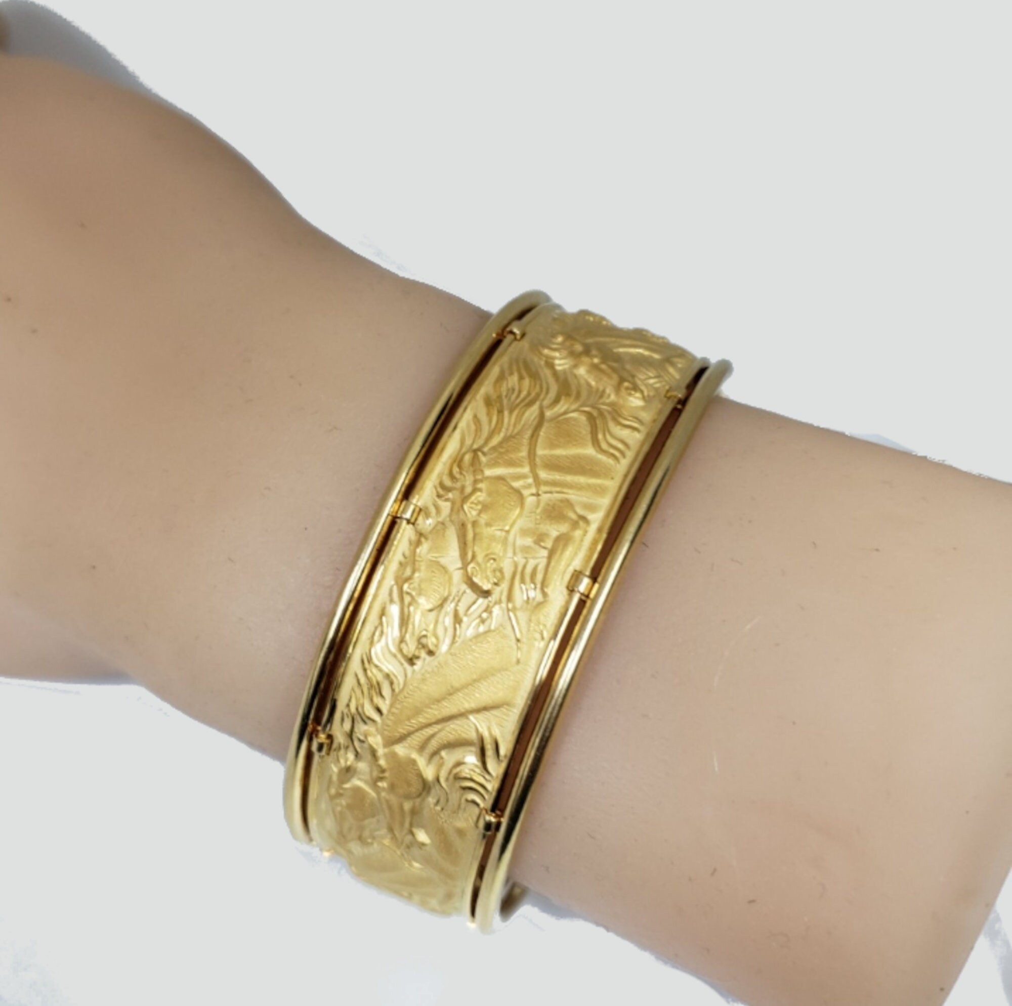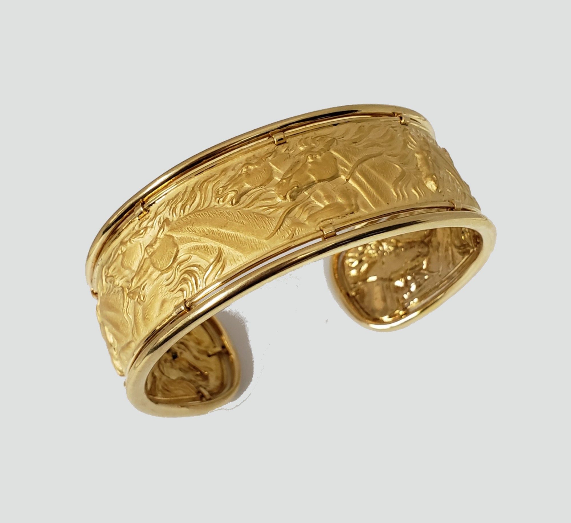 Carrera Y Carrera 18 Karat Gold WIDE Ecuestre Horse Cuff Bracelet